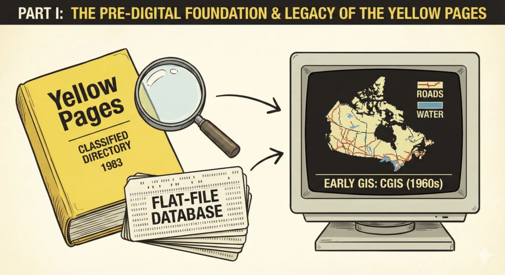 This transformation was not a single invention but a collision of distinct technological lineages: the digitization of commercial databases (business directories) and the democratization of Geographic Information Systems (digital maps). For a long time, these were separate worlds. The history of their convergence is a story of technical ingenuity, fierce corporate warfare, and the relentless pursuit of “ground truth.”